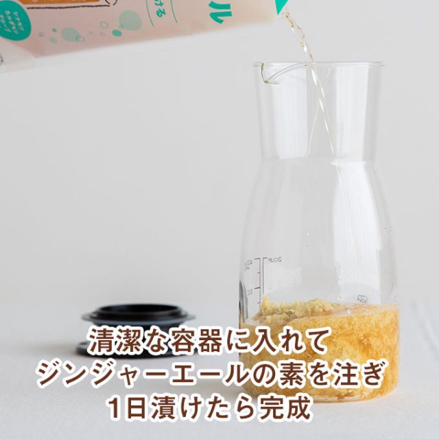 自家製のジンジャーシロップが煮詰める手間なく簡単に出来上がります。1袋で約150~200gが漬けられます。完成したシロップは炭酸で薄めてジンジャーエールやハイボールに。冬は紅茶にプラス、熱湯で薄めてホットジンジャーに。すりおろしたしょうがを使用するので、栄養まるごと。ぽかぽか活動。